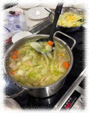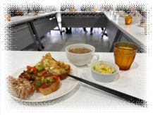 パレットホールにて、夏に「乙島じゃく獲り大会」で獲れたシャコを調理し、 シャコ獲り名人に召し上がっていただく企画(栄養調理改善教室)を行いました。 今年の新メニューは、シャコのピザトーストやマリネ、殻の出汁がしっかり効いたコンソメスープなどで、 どれもとても美味しくいただきました。(地産地消プロジェクト) また、NPO法人「おとしまる」のご利用者様(未就学児)にも調理に参加していただき、お手伝いしてもらいました。