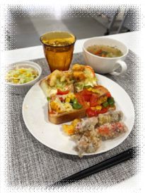 パレットホールにて、夏に「乙島じゃく獲り大会」で獲れたシャコを調理し、 シャコ獲り名人に召し上がっていただく企画(栄養調理改善教室)を行いました。 今年の新メニューは、シャコのピザトーストやマリネ、殻の出汁がしっかり効いたコンソメスープなどで、 どれもとても美味しくいただきました。(地産地消プロジェクト) また、NPO法人「おとしまる」のご利用者様(未就学児)にも調理に参加していただき、お手伝いしてもらいました。